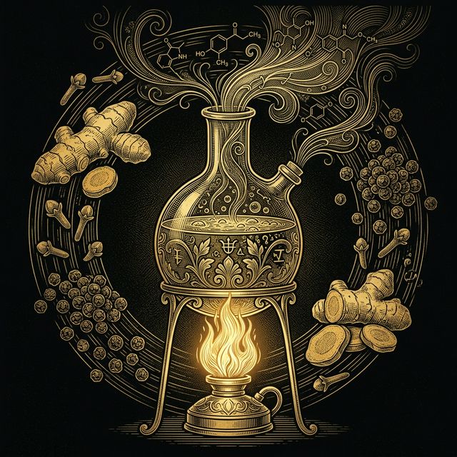 Terpenes in cardamom and curcumin in turmeric are fat-soluble. Blooming them in hot ghee isn't tradition — it's science maximizing bioavailability.